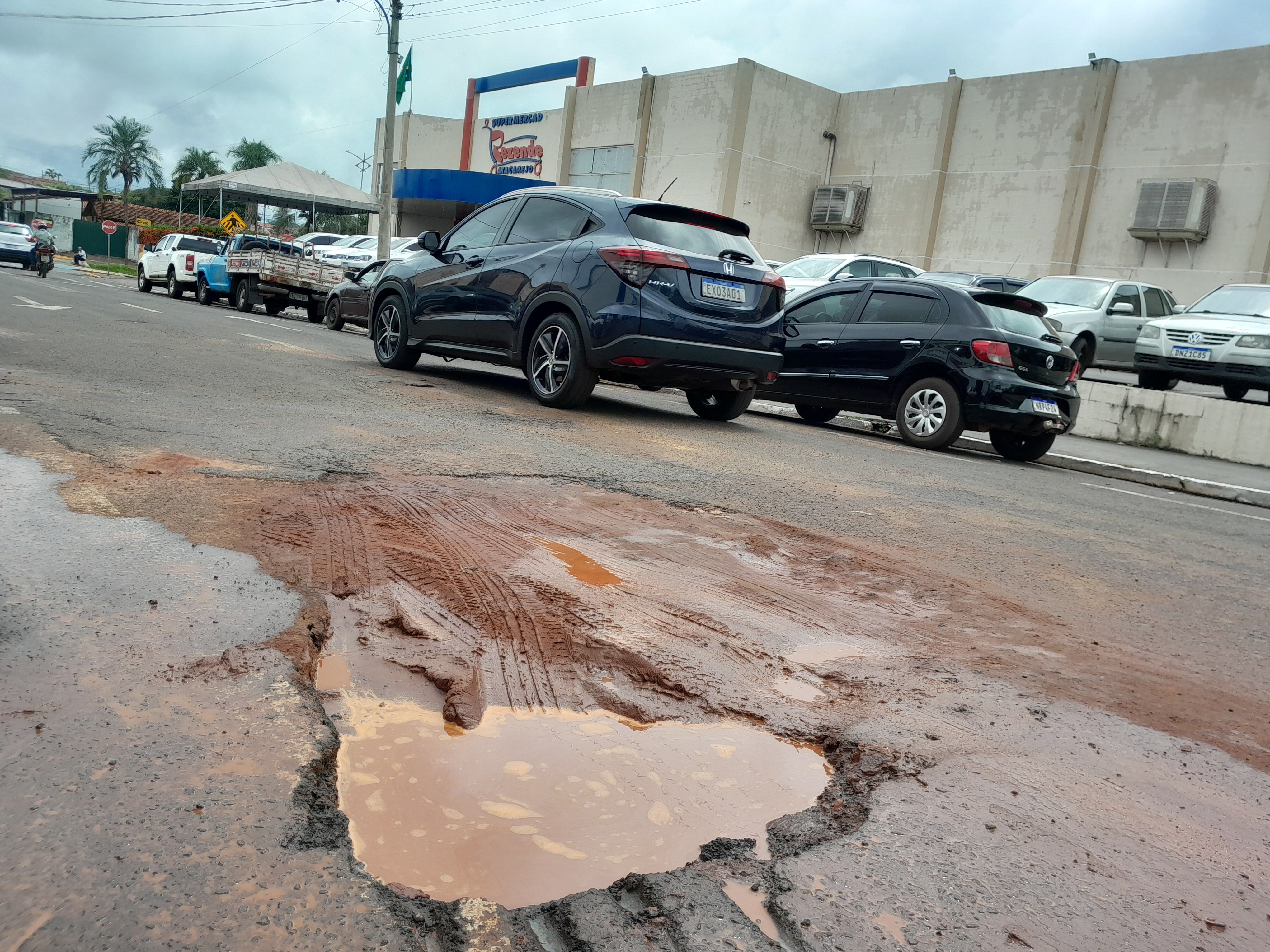 Este da foto é apenas um dos tantos buracos existentes em Cassilândia.