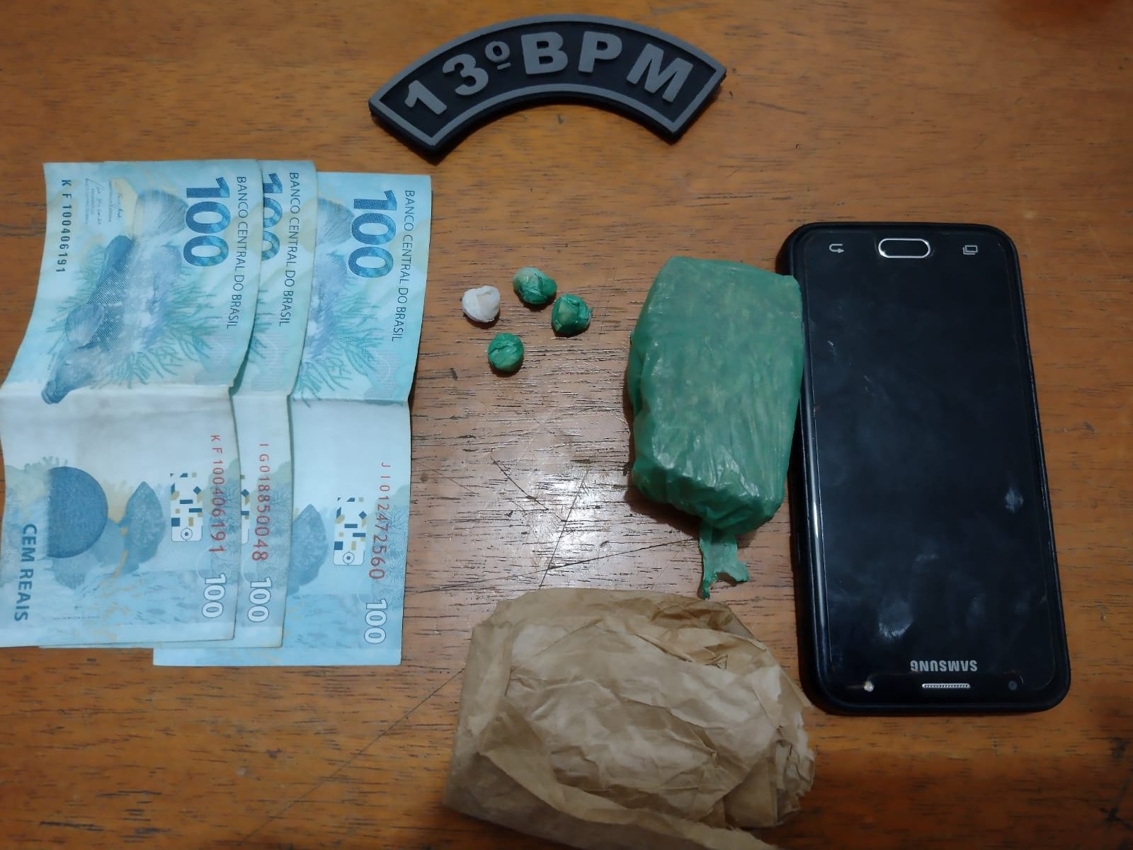 Com apoio da Polícia Militar, o suspeito foi abordado e demonstrou muito nervosismo. Diante das circunstâncias, procedeu-se à busca domiciliar, durante a qual foram apreendidas 43 gramas de crack, 13 gramas de cocaína, 66,6 gramas de maconha, R$ 1.187,00 em espécie, dois telefones celulares, duas máquinas de cartão e uma motocicleta Honda, modelo CG. O indivíduo foi autuado, em flagrante delito, por tráfico ilícito de drogas.