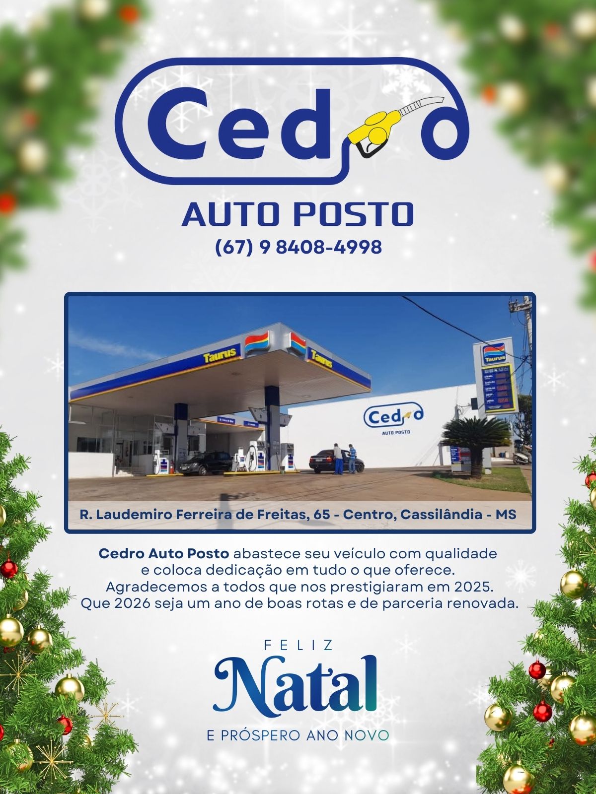 Cassilândia Enfim É Natal: Cedro Auto Posto Posted on 22 de dezembro de 2025 – 10:1922 de dezembro de 2025 – 10:19 Compartilhe: