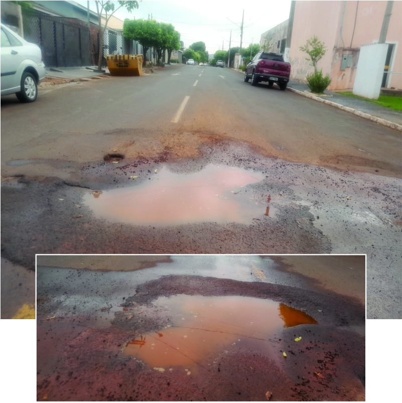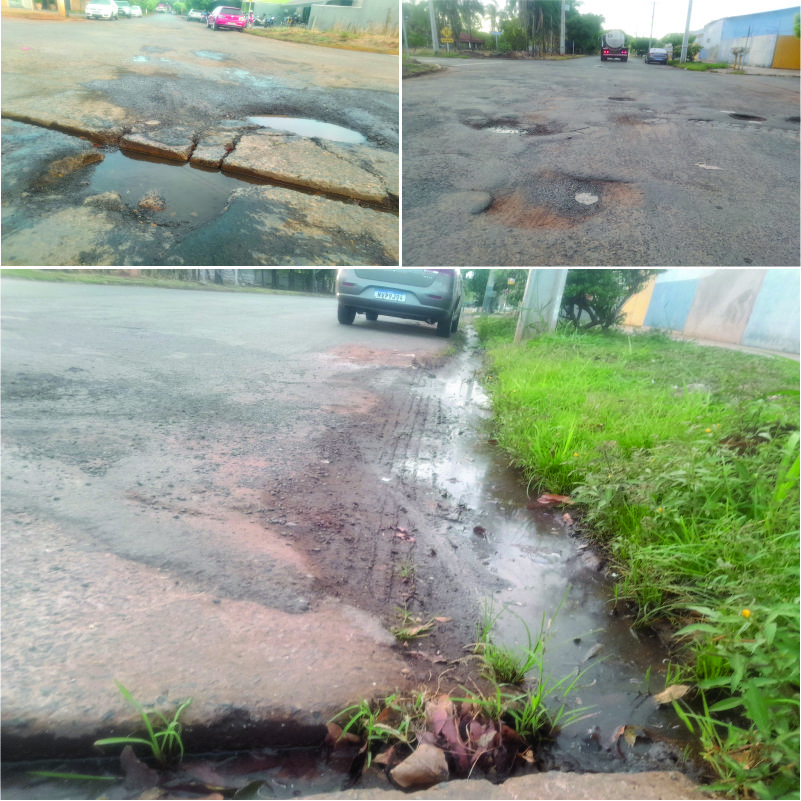 Há muitos dias alguns buracos estão criando transtorno para os condutores de veículos na esquina da Avenida da Saudade Joaquim Silva Sobrinho com a Rua Hesméria Augusta de Almeida, na saída para Inocência, em Cassilândia.