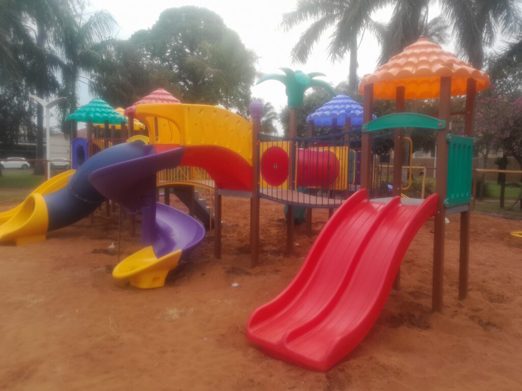 O parque infantil veio para dar um colorido mais vivo ao centro da cidade, bem em frente à Prefeitura, por sinal, a responsável pela obra.