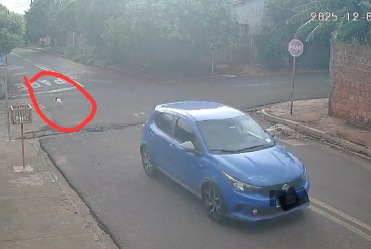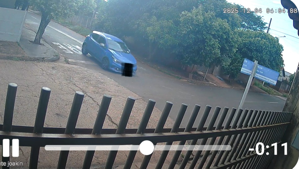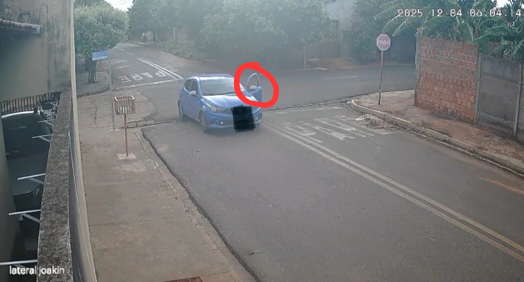 O motorista de um carro de cor azul foi flagrado por duas câmeras de segurança, na esquina das ruas São João e São José, na Vila Pernambuco, em Cassilândia, às 6h3 de ontem, quinta-feira, 4 de dezembro.
