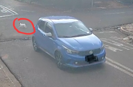 Num dos vídeos pode ser visto o momento concomitante em que a porta do carro é aberta e o cachorro branco e preto sai correndo no fundo do veículo.