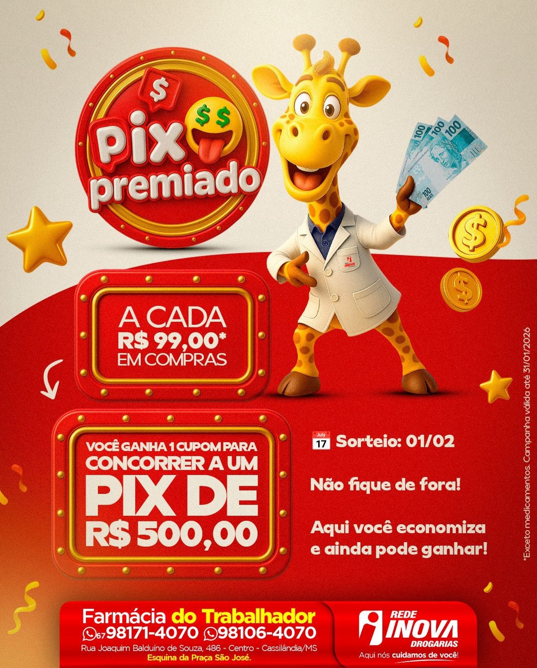 Cassilândia Urgente: Já pensou começar o mês com um Pix de R$ 500,00 na conta? Passe agora na Rede Inova Drogarias Posted on 26 de janeiro de 2026 - 17:2126 de janeiro de 2026 - 17:54 Compartilhe: Posted in Noticias.