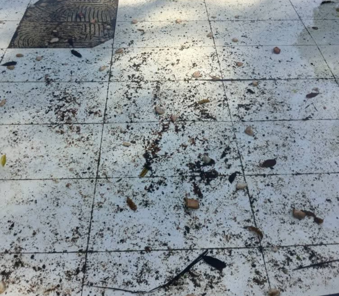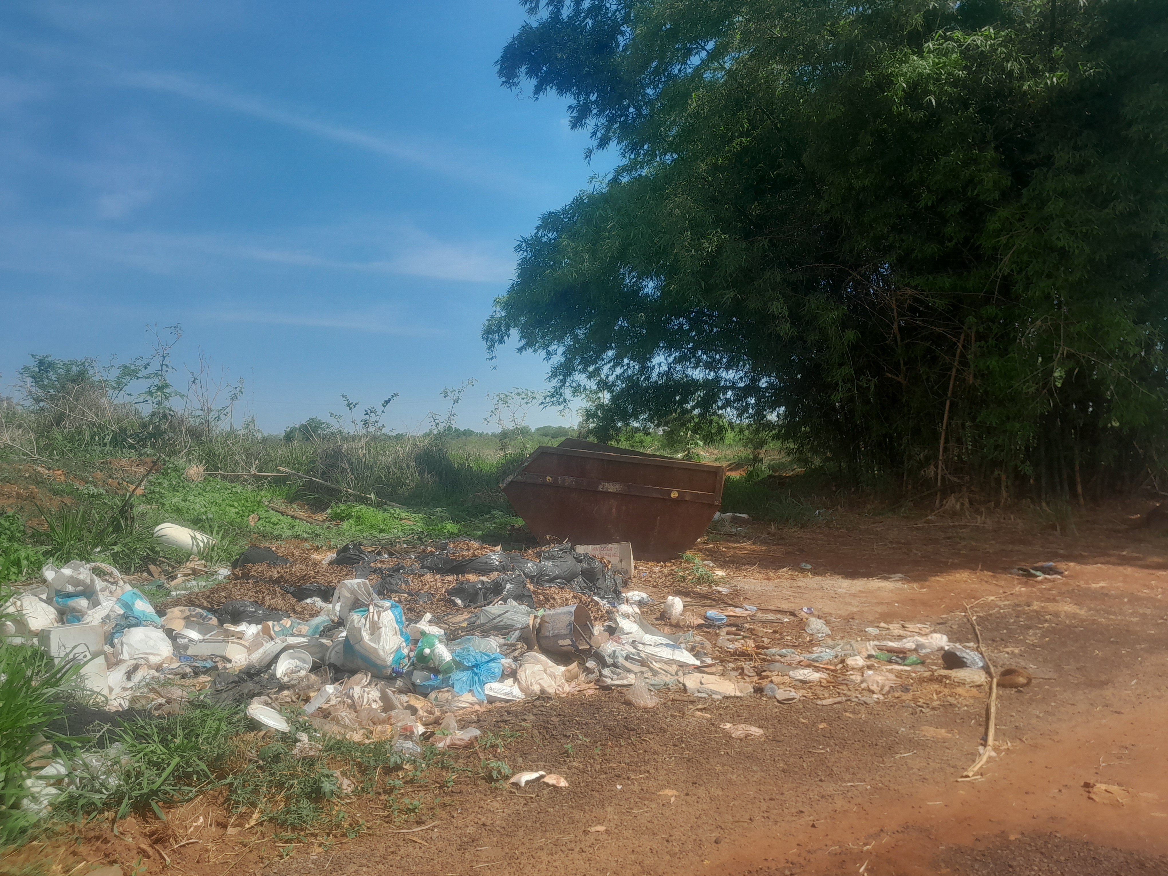 O lixo continua sendo jogado no chão ao lado de caçamba