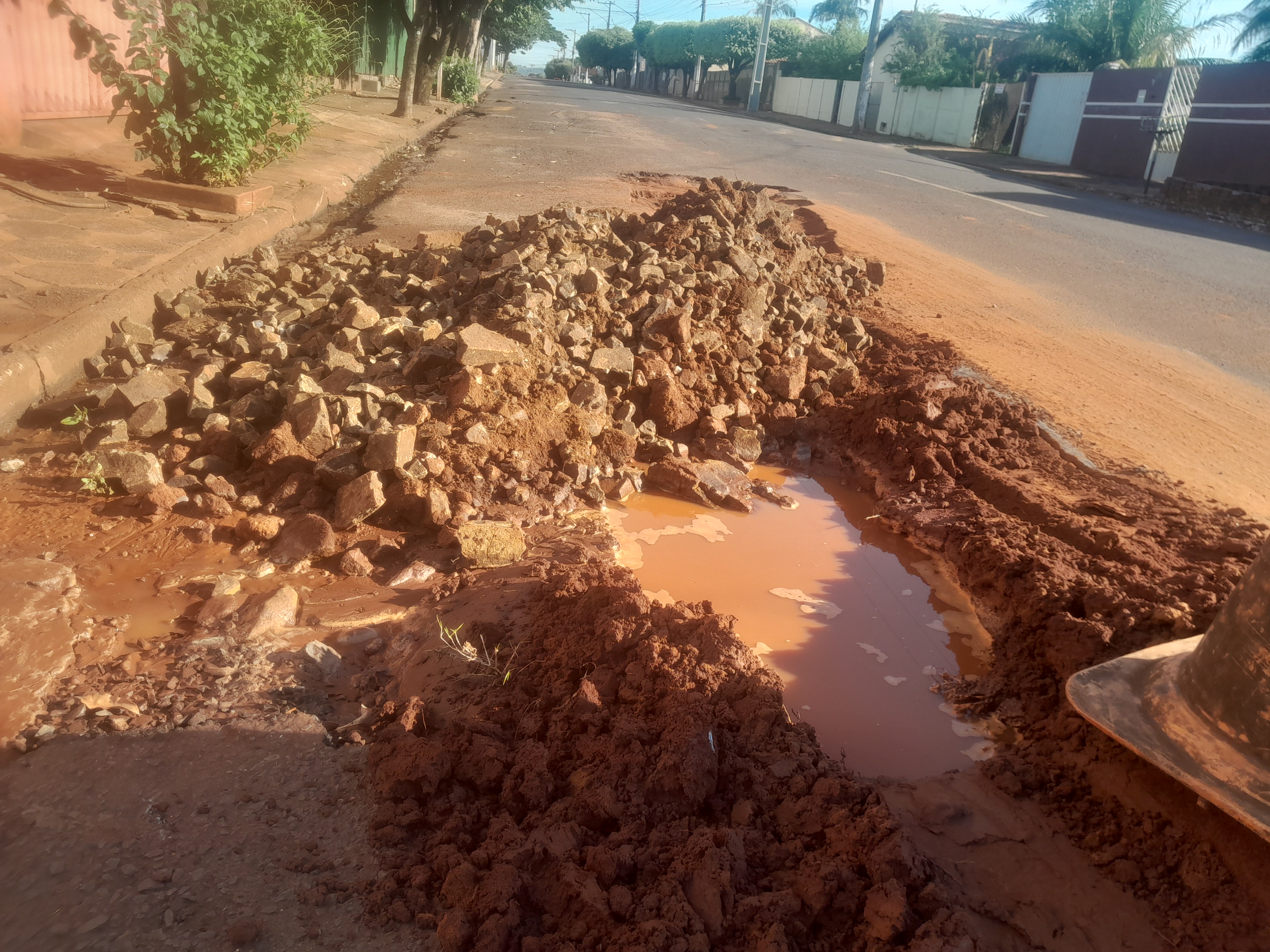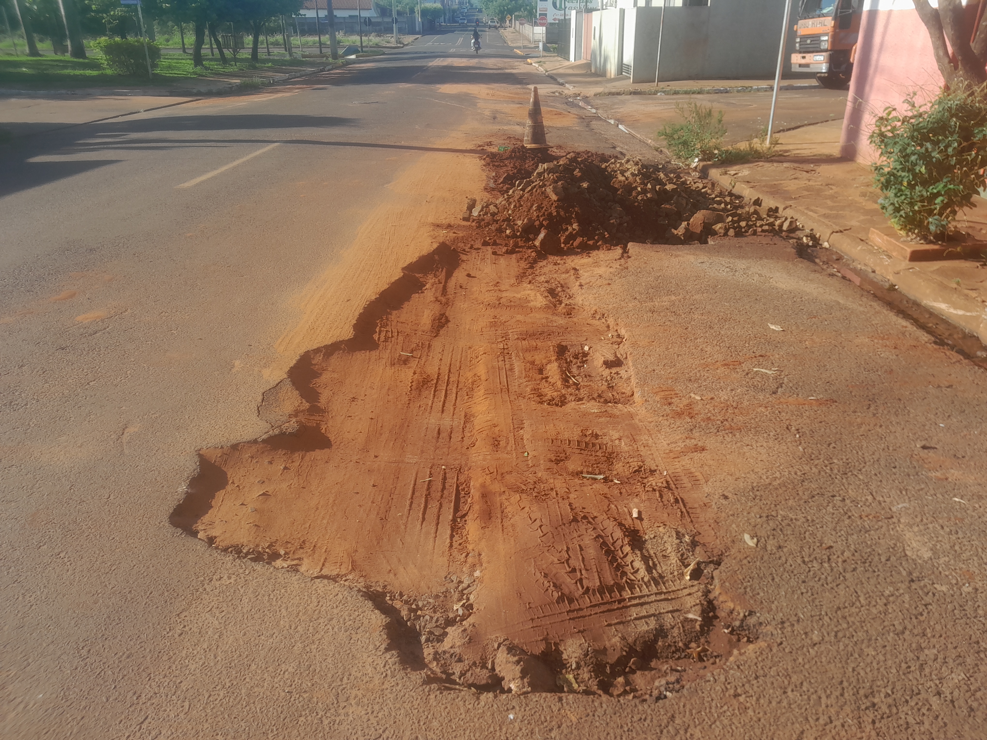 O buraco foi aberto para ser feito reparo na rede de água e até hoje não foi feito o recapeamento asfáltico.