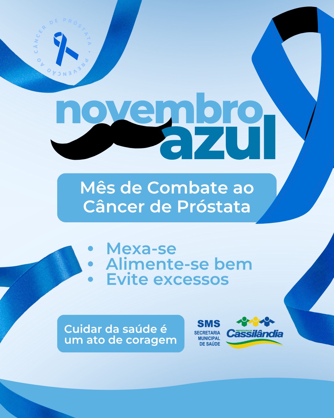 A Prefeitura Municipal de Cassilândia, por meio da Secretaria Municipal de Saúde, iniciou as ações do Novembro Azul, campanha dedicada à conscientização, prevenção e combate ao câncer de próstata. Durante todo o mês, unidades de saúde do município promoverão atividades educativas, atendimentos direcionados e orientações à população masculina.