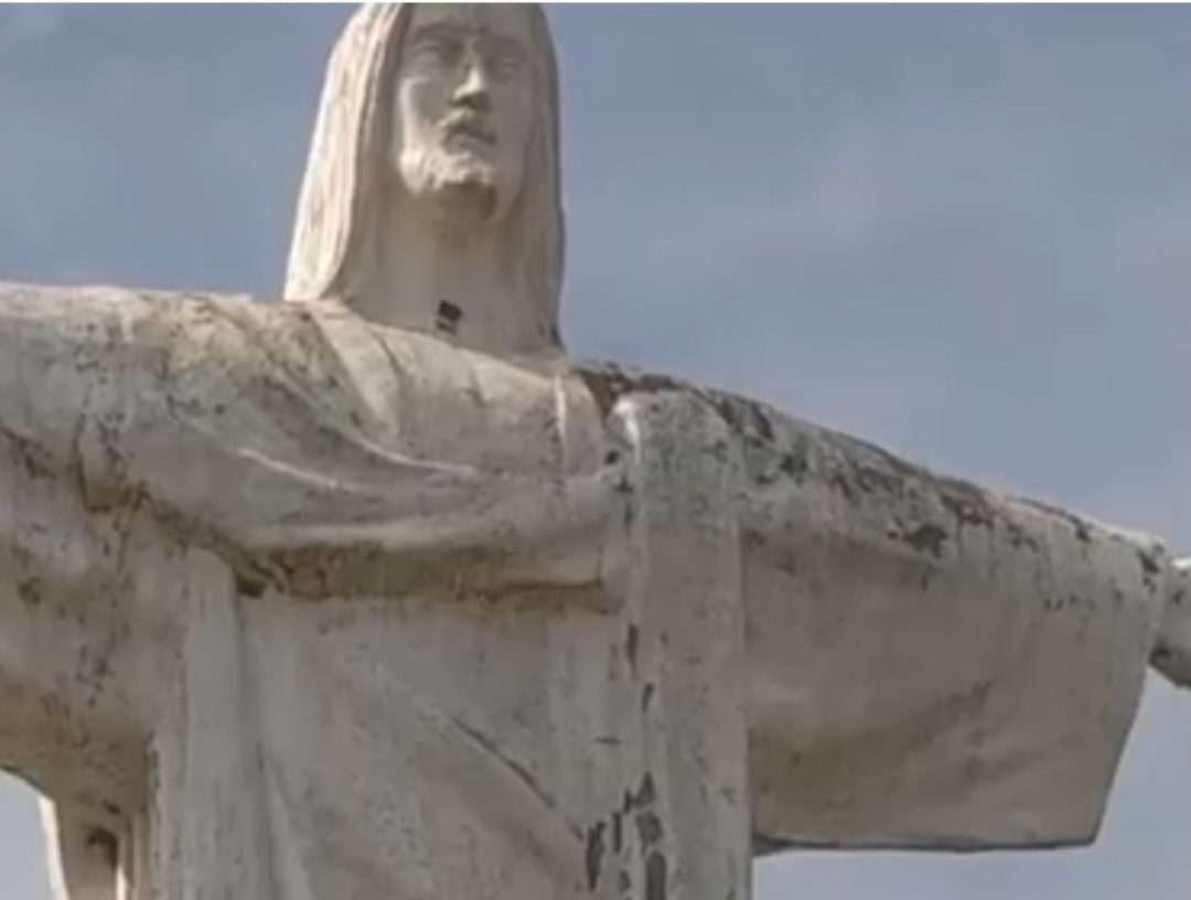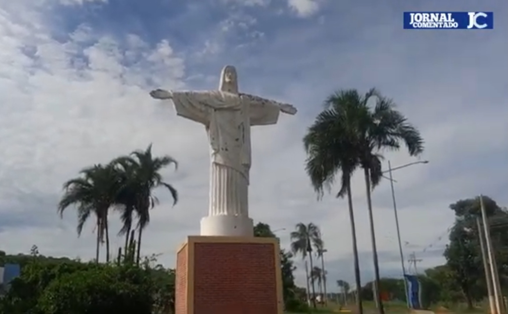 É que a estátua não vem sendo cuidada, a tinta branca está desaparecendo e manchas escuras podem ser vistas de longe pelos moradores locais e visitantes que vão apreciar de perto esse cartão postal de Cassilândia.