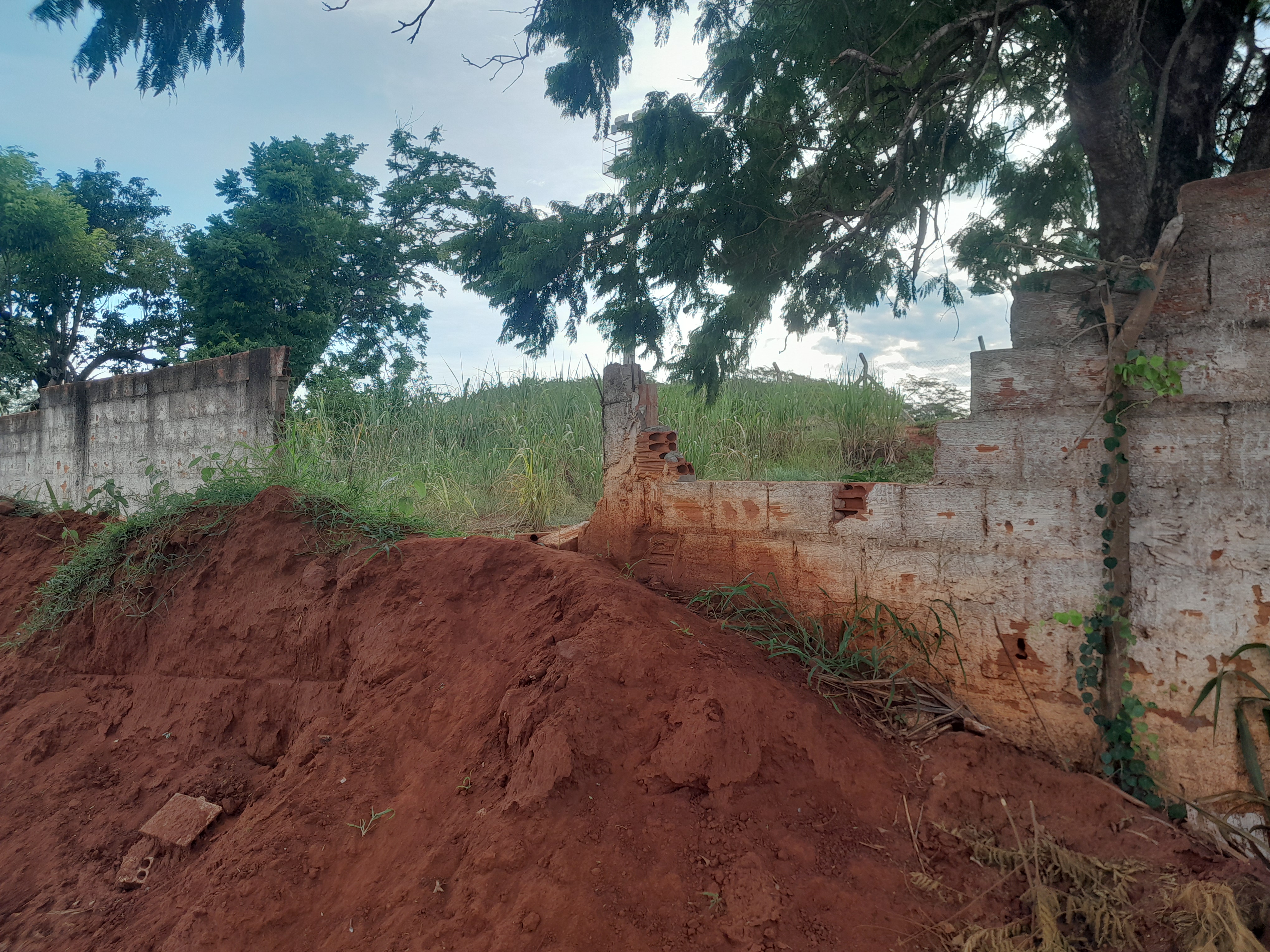 O muro no fundo do Estádio Municipal Orácio Cesário de Almeida, no Alto Izanópolis, em Cassilândia, em pelo menos duas partes, veio abaixo com as últimas chuvas que caíram nos últimos dias, conforme um morador das imediações.