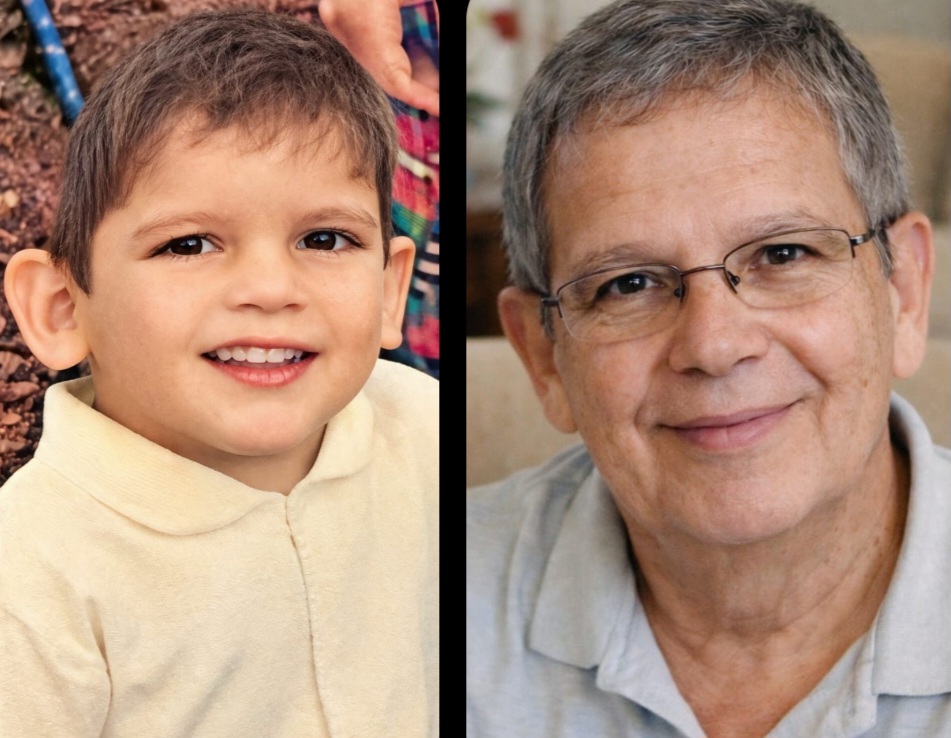 Jerônimo (Jerominho) aos dois anos e ao lado aos 61 anos em reprodução por inteligência artificial