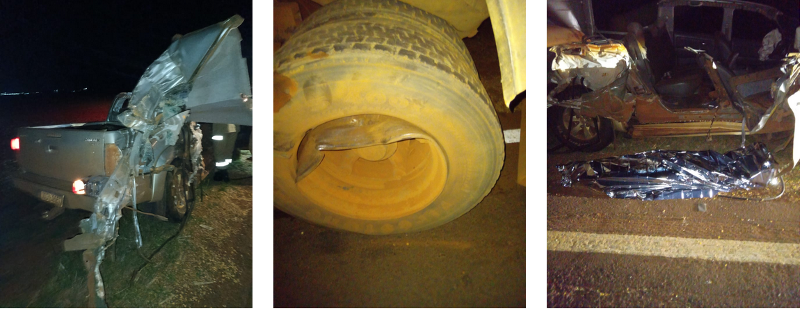 Informações preliminares revelam que a mulher morta e outras duas pessoas ficaram presas nas ferragens e precisaram ser retiradas pelo Corpo de Bombeiros. Conforme testemunhas, uma carreta estava parada em trecho de “pare e siga”. Atrás estavam a picape Fiat Toro e o Gol. Desgovernada, outra carreta que seguia no mesmo sentido bateu nos dois carros. O Gol foi jogado para fora da pista e a Toro parou embaixo da carreta da frente.