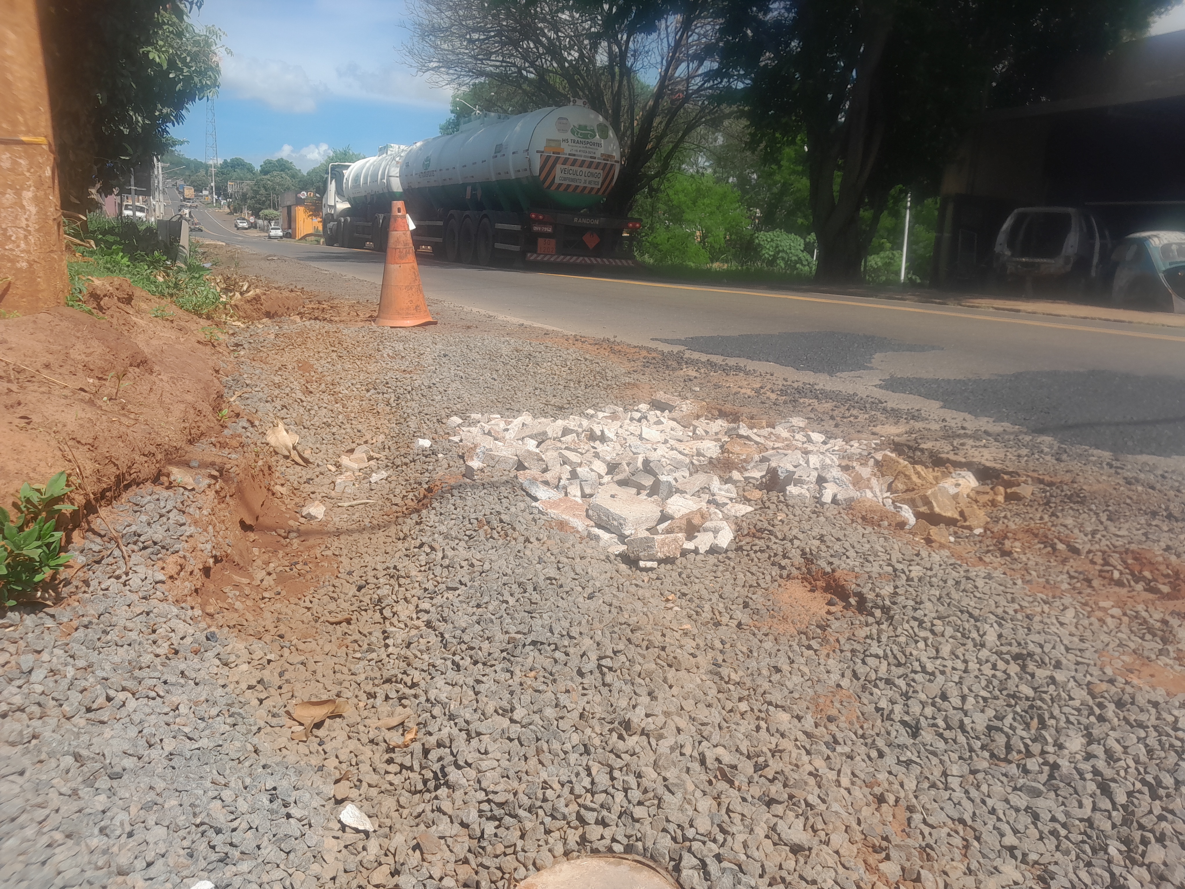 Um enorme buraco, localizado na esquina da Avenida Presidente Dutra e Rua Antônio B. Almeida, em Cassilândia, ficou “famoso” há algumas semanas quando o caminhão de uma loja de materiais para construção caiu nele.