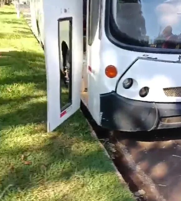 Segundo ela, os ônibus do transporte não respeitam a acessibilidade de cadeirante ao estacionar interropendo a rampa existente na porta da escola.