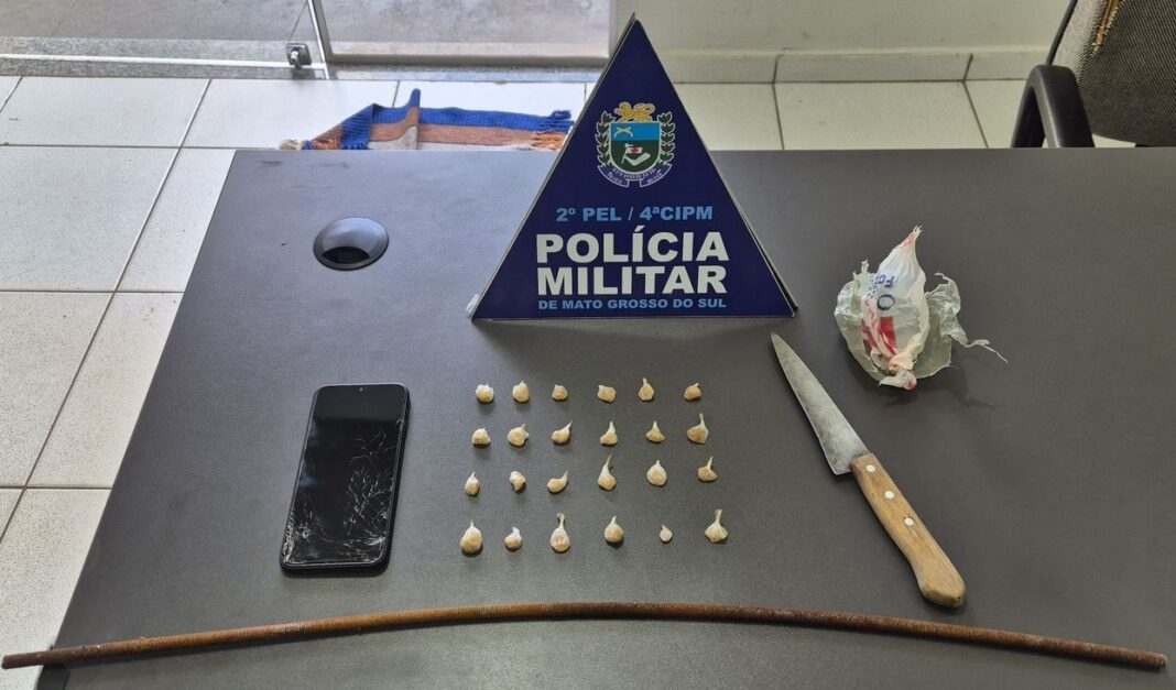 Diante dos fatos, o jovem recebeu voz de prisão pelos crimes de tráfico de drogas e violência doméstica. Ele foi encaminhado à Delegacia de Polícia, juntamente com o entorpecente apreendido e os objetos utilizados na agressão — uma barra de ferro e uma faca — para as providências legais cabíveis.